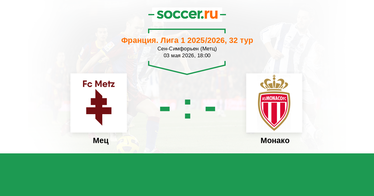 Франция. Лига 1 03.04.2022 Мец Логотип футбольный клуб Мец 1:2 Логотип футбольный клуб Монако Монако