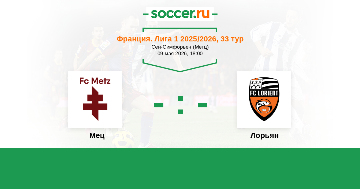 Франция. Лига 1 12.12.2021 Мец Логотип футбольный клуб Мец 4:1 Логотип футбольный клуб Лорьян Лорьян