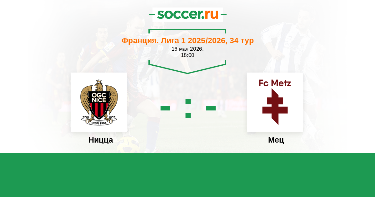 Франция. Лига 1 09.11.2025 Мец Логотип футбольный клуб Мец 2:1 Логотип футбольный клуб Ницца Ницца