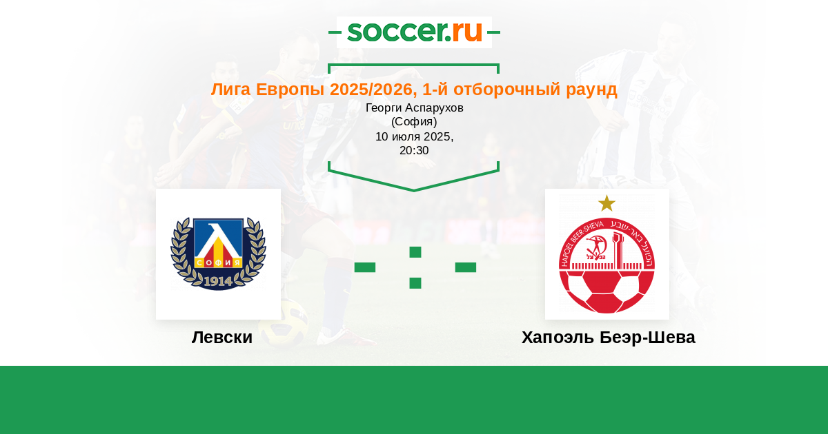 Протокол матча Левски против Хапоэль Беэр-Шева