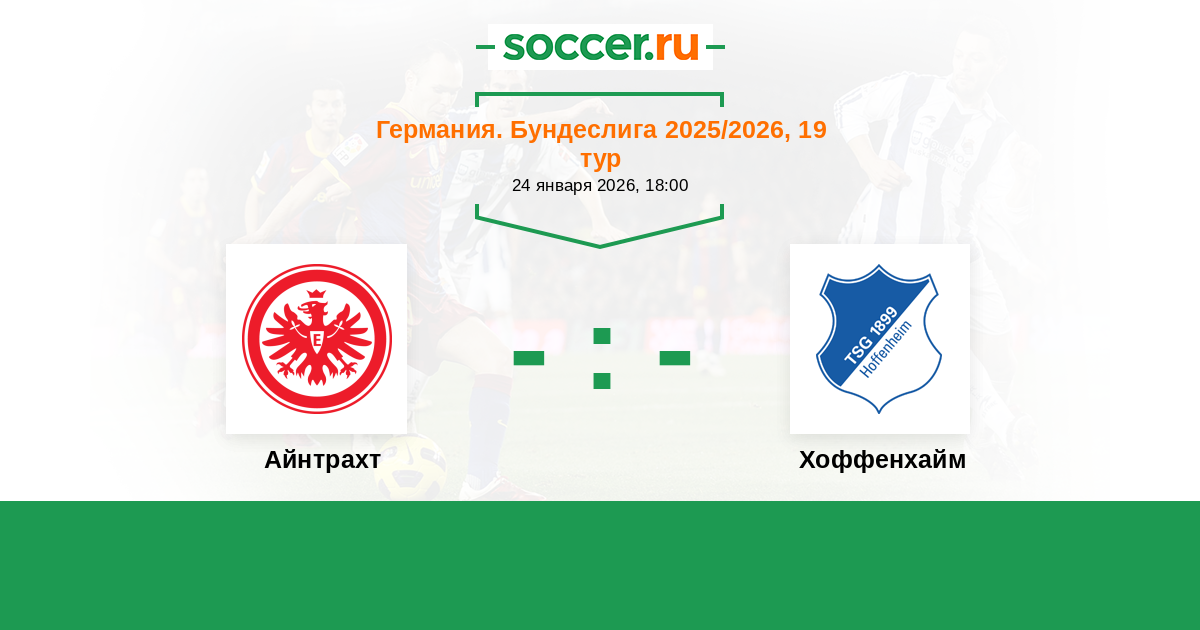 Германия. Бундеслига 26.01.2025 Хоффенхайм Логотип футбольный клуб Хоффенхайм (Зинсхайм) 2:2 Логотип футбольный клуб Айнтрахт (Франкфурт) Айнтрахт