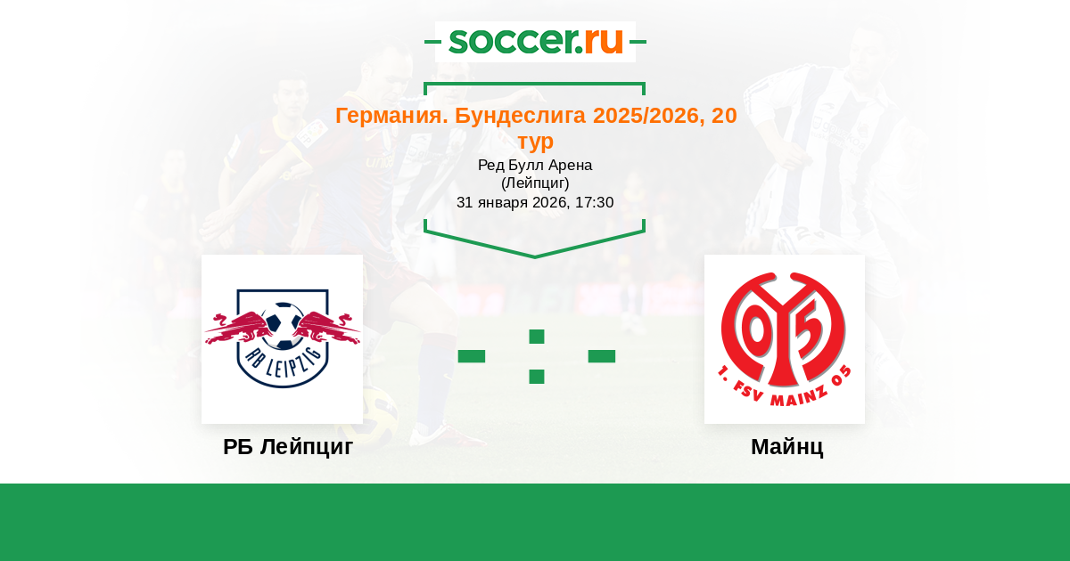 Германия. Бундеслига 23.01.2021 Майнц Логотип футбольный клуб Майнц 3:2 Логотип футбольный клуб РБ Лейпциг РБ Лейпциг