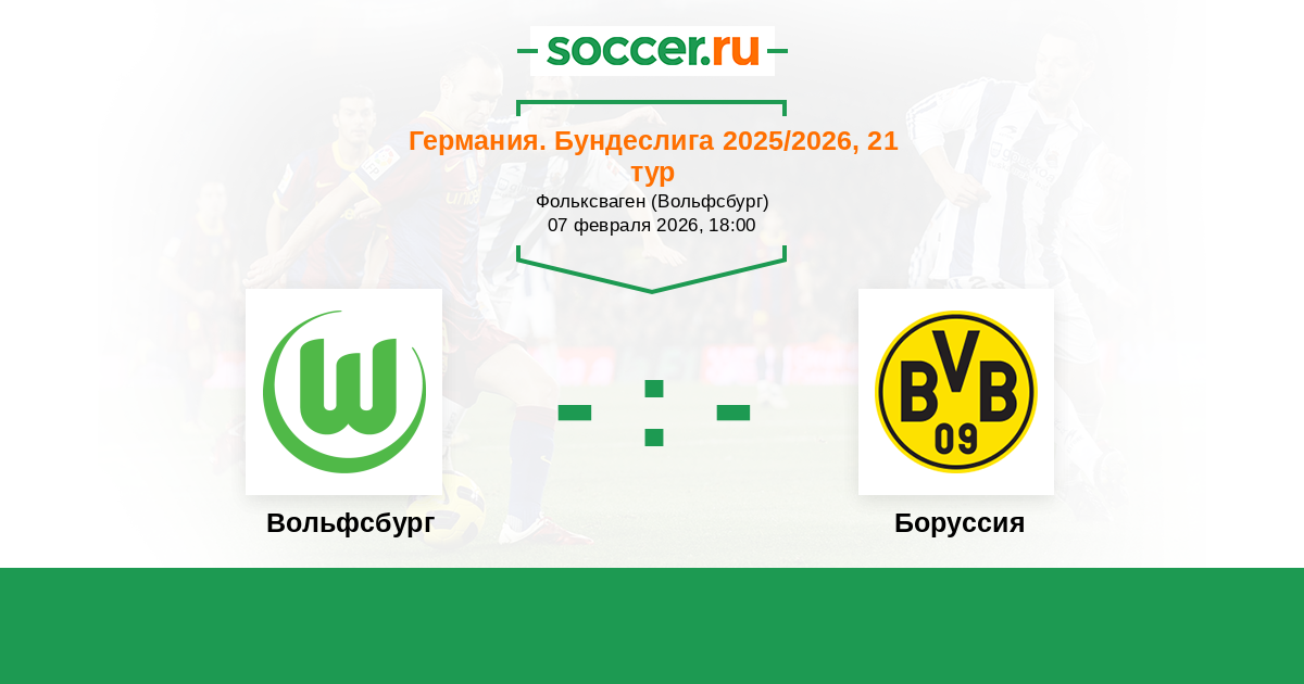 Германия. Бундеслига 18.02.2017 Боруссия Логотип футбольный клуб Боруссия (Дортмунд) 3:0 Логотип футбольный клуб Вольфсбург Вольфсбург