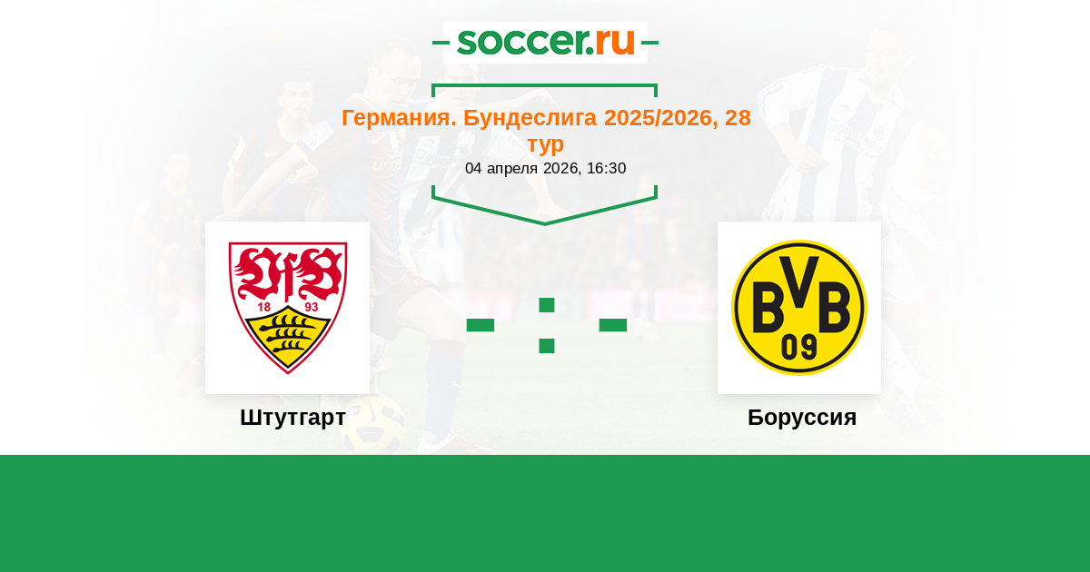 Германия. Бундеслига 23.04.2016 Штутгарт Логотип футбольный клуб Штутгарт 0:3 Логотип футбольный клуб Боруссия (Дортмунд) Боруссия