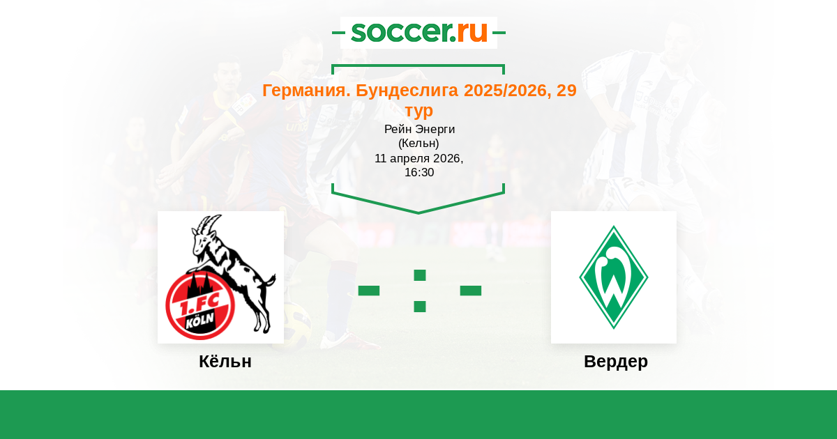 Германия. Бундеслига 29.11.2025 Вердер Логотип футбольный клуб Вердер (Бремен) 1:1 Логотип футбольный клуб Кёльн Кёльн