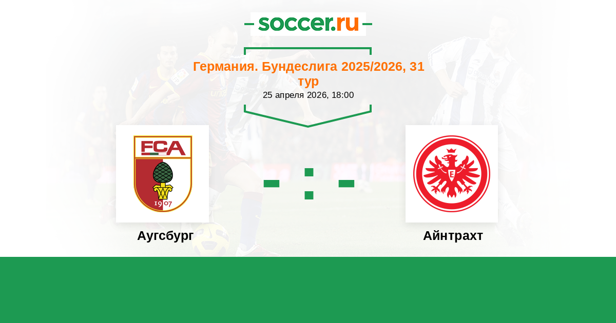 Германия. Бундеслига 20.04.2025 Аугсбург Логотип футбольный клуб Аугсбург 0:0 Логотип футбольный клуб Айнтрахт (Франкфурт) Айнтрахт