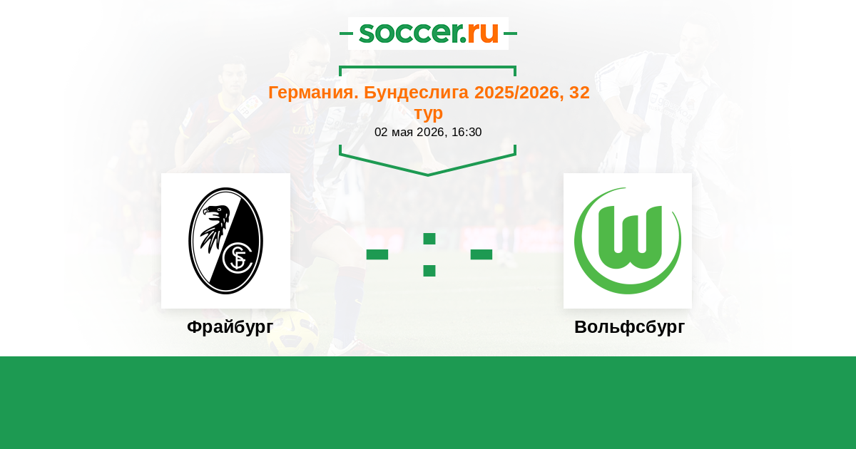 Германия. Бундеслига 26.04.2025 Вольфсбург Логотип футбольный клуб Вольфсбург 0:1 Логотип футбольный клуб Фрайбург Фрайбург