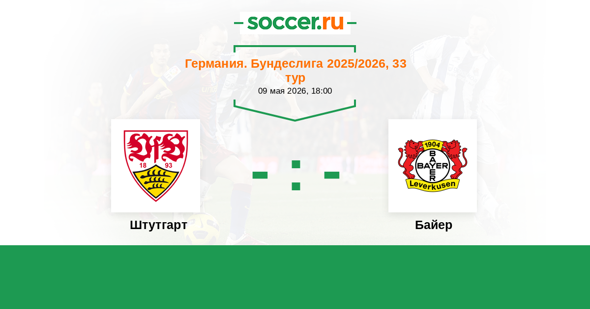 Германия. Бундеслига 28.04.2018 Байер Логотип футбольный клуб Байер (Леверкузен) 0:1 Логотип футбольный клуб Штутгарт Штутгарт