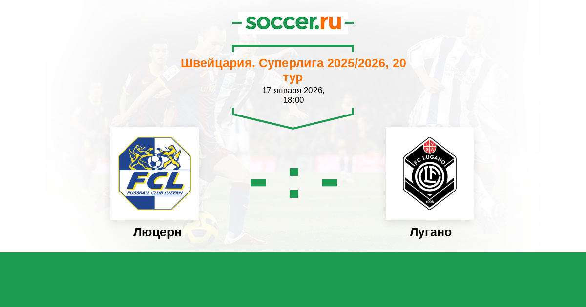 Швейцария. Суперлига 16.02.2019 Люцерн Логотип футбольный клуб Люцерн 0:3 Логотип футбольный клуб Лугано Лугано