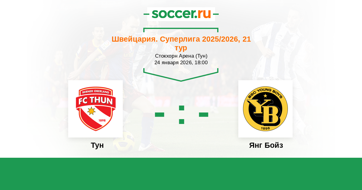 Швейцария. Суперлига 18.04.2018 Тун Логотип футбольный клуб Тун 2:2 Логотип футбольный клуб Янг Бойз (Берн) Янг Бойз