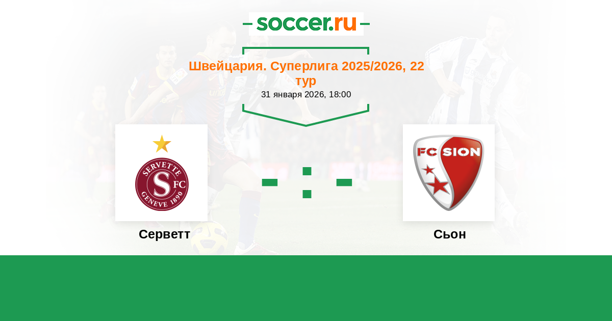 Швейцария. Суперлига 29.01.2023 Серветт Логотип футбольный клуб Серветт (Женева) 2:2 Логотип футбольный клуб Сьон Сьон