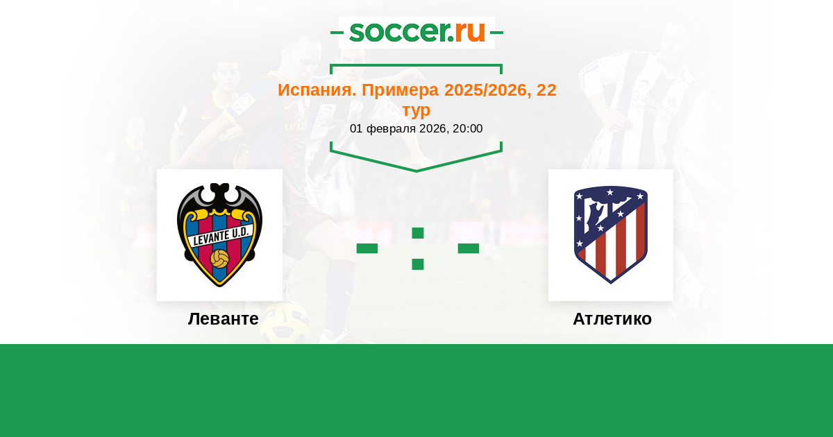Испания. Примера 20.02.2021 Атлетико Логотип футбольный клуб Атлетико (Мадрид) 0:2 Логотип футбольный клуб Леванте (Валенсия) Леванте