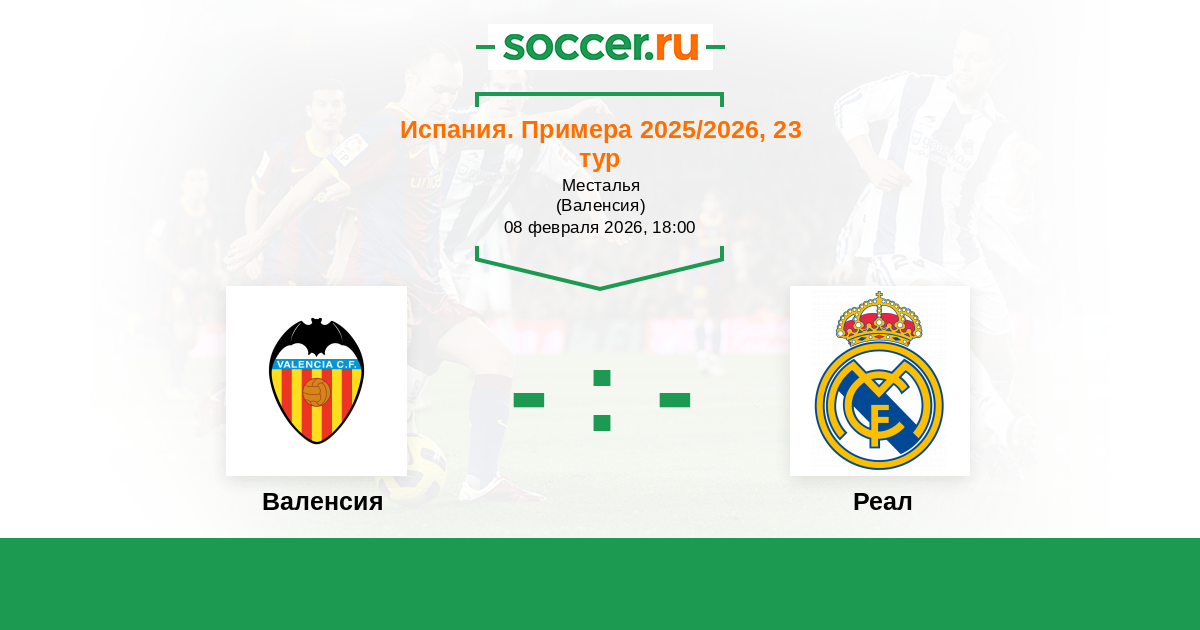 Испания. Примера 03.01.2025 Валенсия Логотип футбольный клуб Валенсия 1:2 Логотип футбольный клуб Реал (Мадрид) Реал