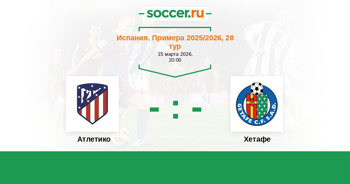 Испания. Примера 21.03.2015 Атлетико Логотип футбольный клуб Атлетико (Мадрид) 2:0 Логотип футбольный клуб Хетафе Хетафе