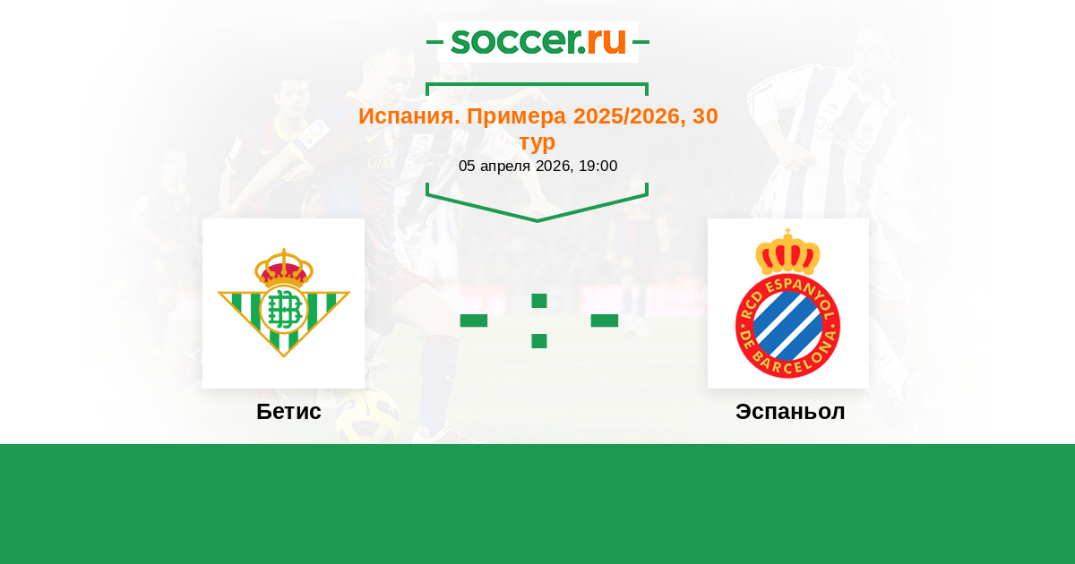 Испания. Примера 04.05.2025 Эспаньол Логотип футбольный клуб Эспаньол (Барселона) 1:2 Логотип футбольный клуб Бетис (Севилья) Бетис