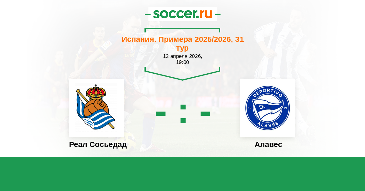 Испания. Примера 31.03.2024 Алавес Логотип футбольный клуб Алавес (Витория-Гастейс) 0:1 Логотип футбольный клуб Реал Сосьедад (Сан-Себастьян) Реал Сосьедад