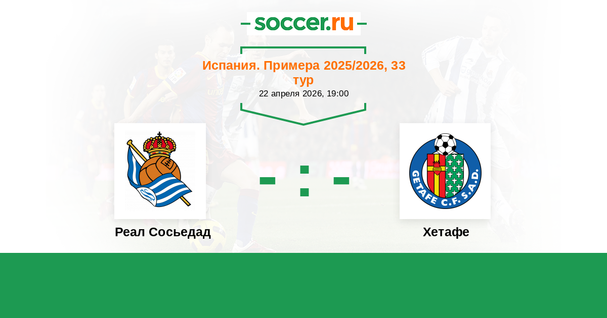 Испания. Примера 26.01.2025 Реал Сосьедад Логотип футбольный клуб Реал Сосьедад (Сан-Себастьян) 0:3 Логотип футбольный клуб Хетафе Хетафе