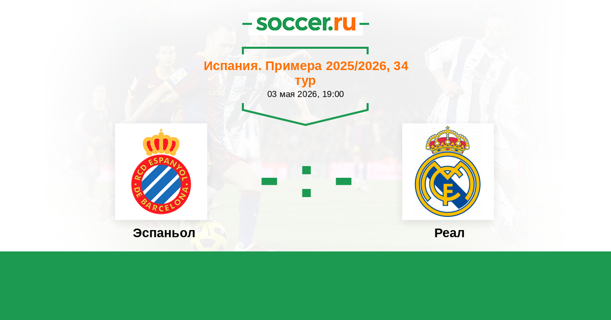 Испания. Примера 20.09.2025 Реал Логотип футбольный клуб Реал (Мадрид) 2:0 Логотип футбольный клуб Эспаньол (Барселона) Эспаньол