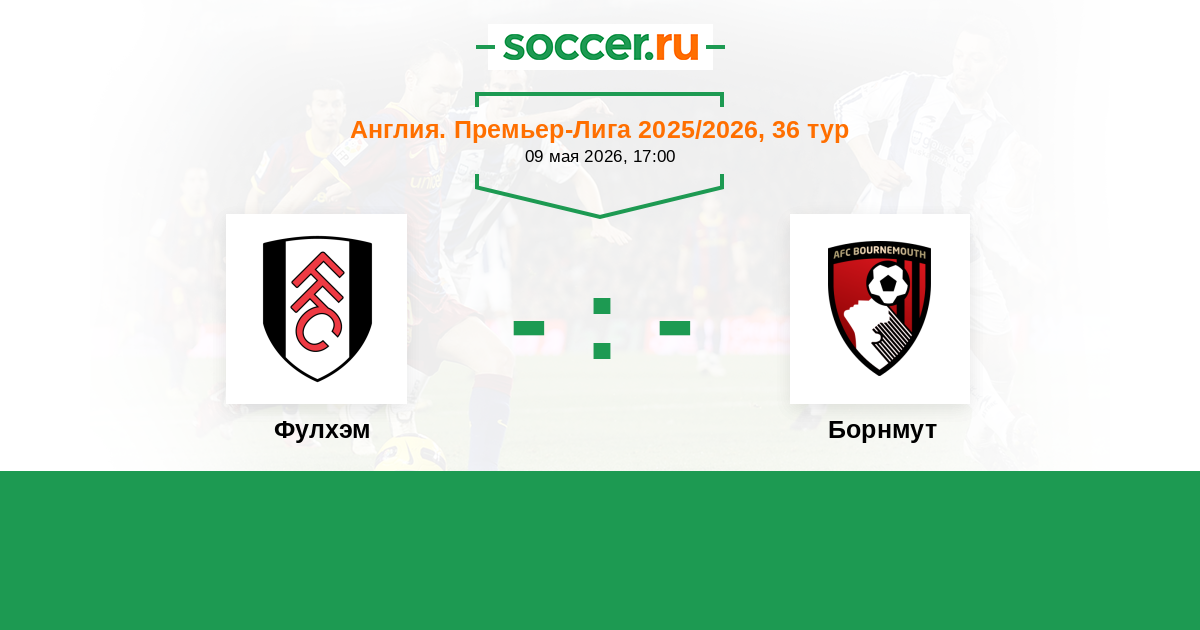 Англия. Премьер-Лига 10.02.2024 Фулхэм Логотип футбольный клуб Фулхэм (Лондон) 3:1 Логотип футбольный клуб Борнмут Борнмут