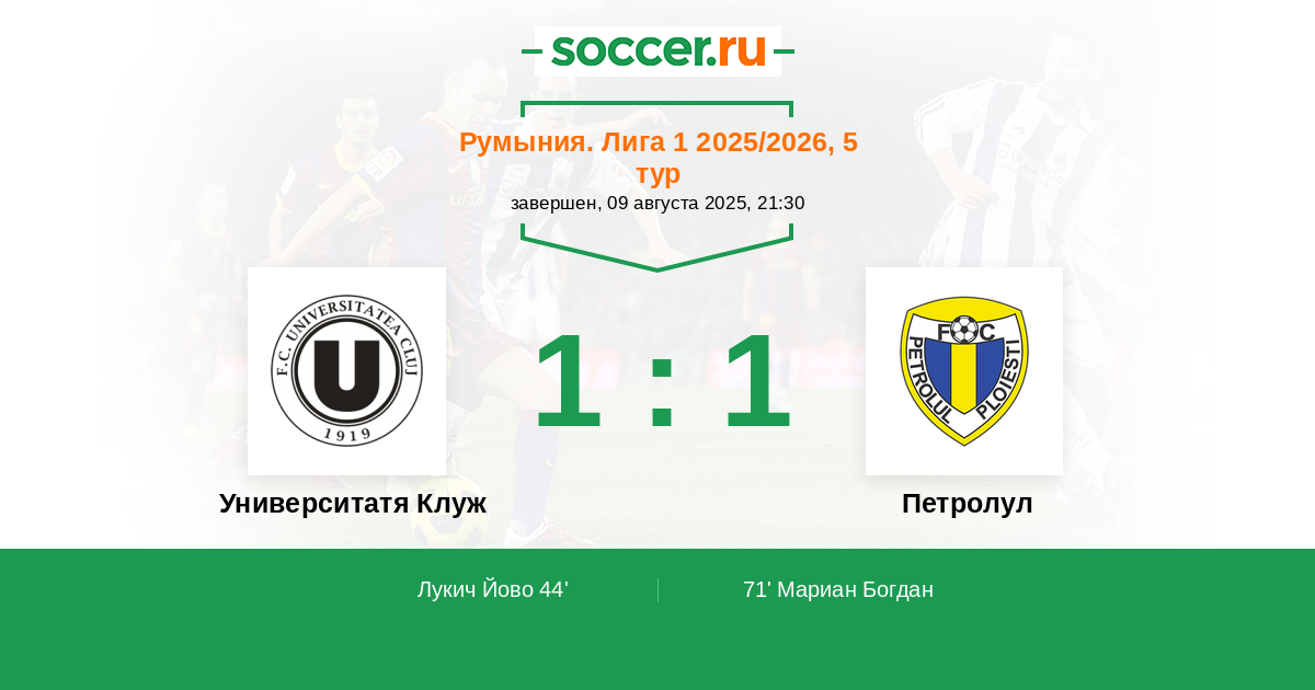 Протокол матча Университатя Клуж против Петролул