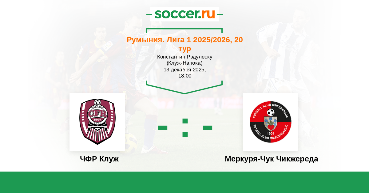 Протокол матча ЧФР Клуж против Меркуря-Чук Чикжереда