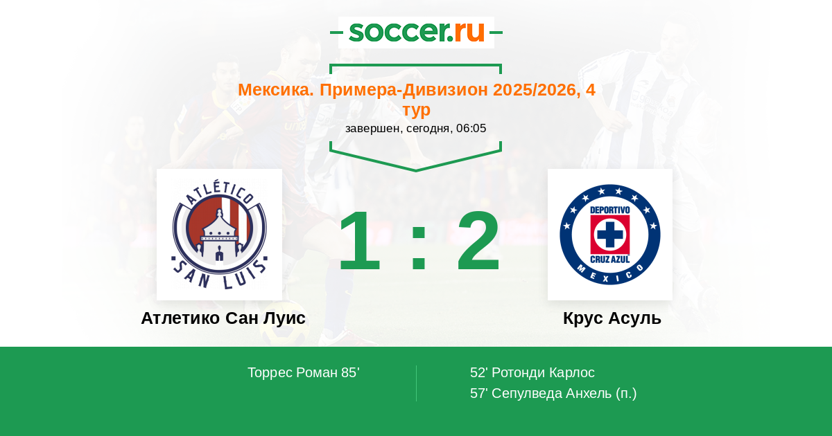 Протокол матча Атлетико Сан Луис против Крус Асуль