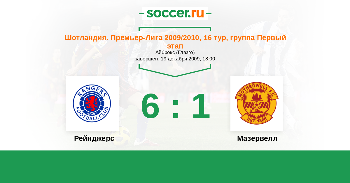 Шотландия. Премьер-Лига 16.10.2010 Рейнджерс Логотип футбольный клуб Рейнджерс (Глазго) 4:1 Логотип футбольный клуб Мазервелл Мазервелл