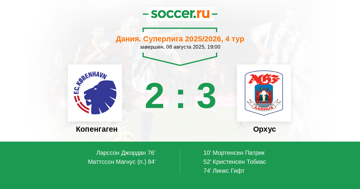 Протокол матча Копенгаген против Орхус