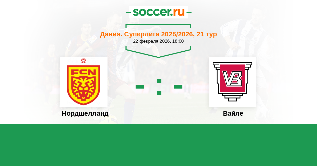 Дания. Суперлига 23.02.2019 Вайле Логотип футбольный клуб Вайле 1:3 Логотип футбольный клуб Нордшелланд (Фарум) Нордшелланд