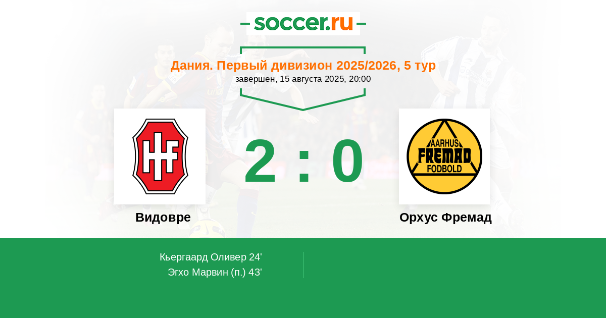 Протокол матча Видовре против Орхус Фремад