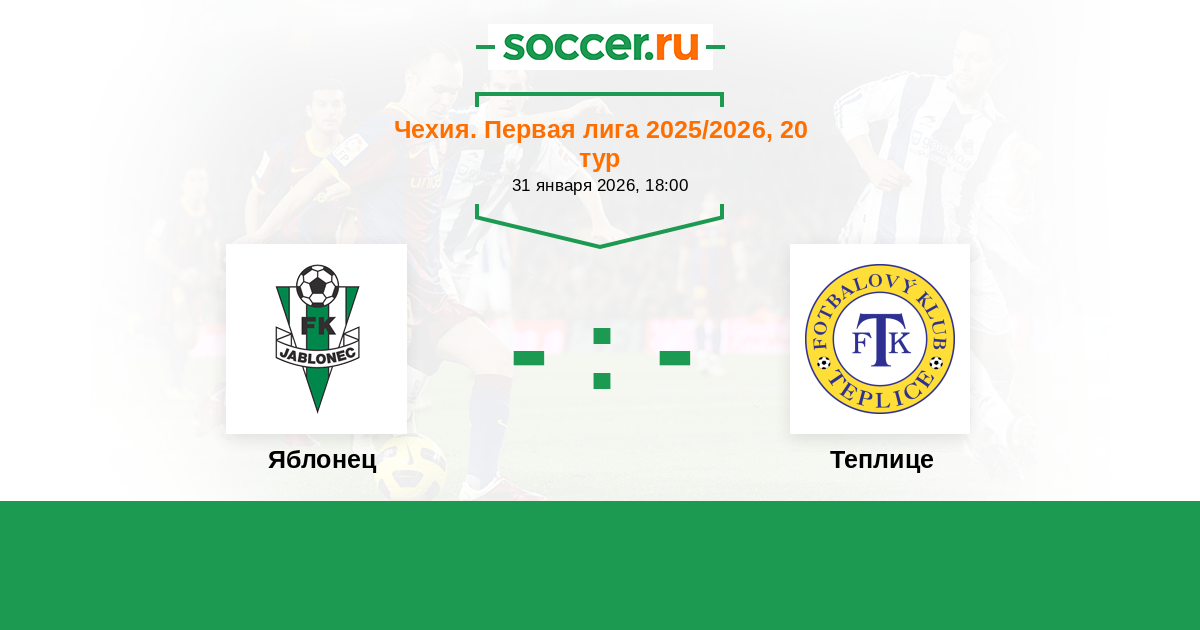 Чехия. Первая Лига 15.01.2021 Теплице Логотип футбольный клуб Теплице 0:5 Логотип футбольный клуб Яблонец (Яблонец-над-Нисоу) Яблонец