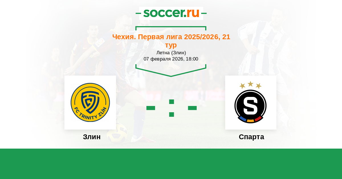 Чехия. Первая Лига 25.02.2023 Злин Логотип футбольный клуб Злин 2:3 Логотип футбольный клуб Спарта (Прага) Спарта