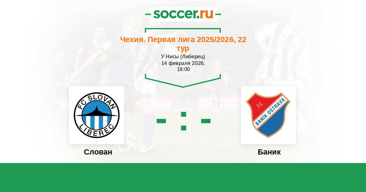 Чехия. Первая Лига 18.02.2008 Слован Логотип футбольный клуб Слован (Либерец) 1:1 Логотип футбольный клуб Баник (Острава) Баник