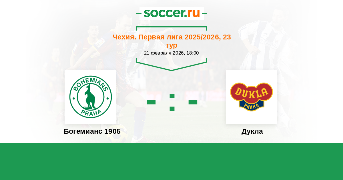 Чехия. Первая Лига 20.02.2016 Богемианс 1905 Логотип футбольный клуб Богемианс 1905 (Прага) 1:0 Логотип футбольный клуб Дукла (Прага) Дукла