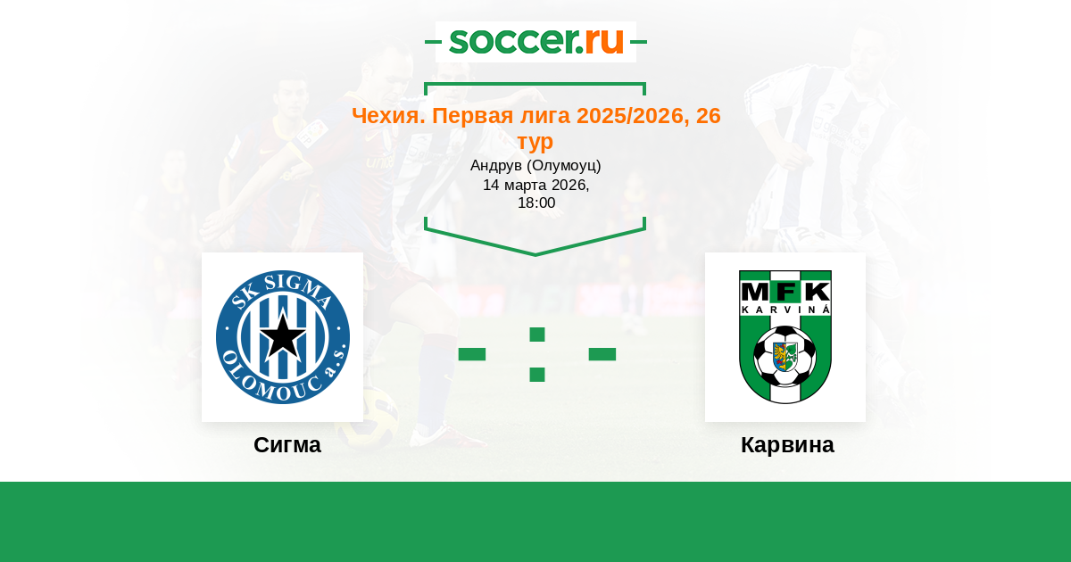 Чехия. Первая Лига 17.10.2021 Сигма Логотип футбольный клуб Сигма (Оломоуц) 2:0 Логотип футбольный клуб Карвина Карвина