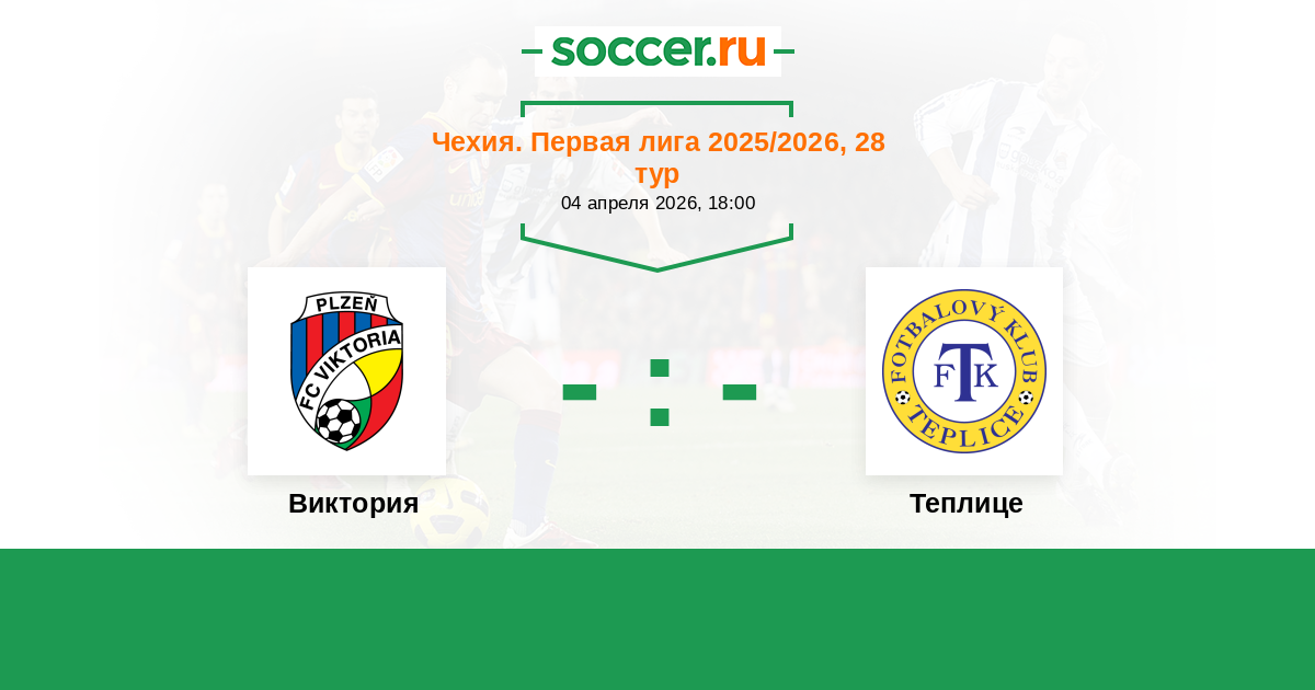 Чехия. Первая Лига 20.04.2015 Теплице Логотип футбольный клуб Теплице 0:0 Логотип футбольный клуб Виктория (Пльзень) Виктория