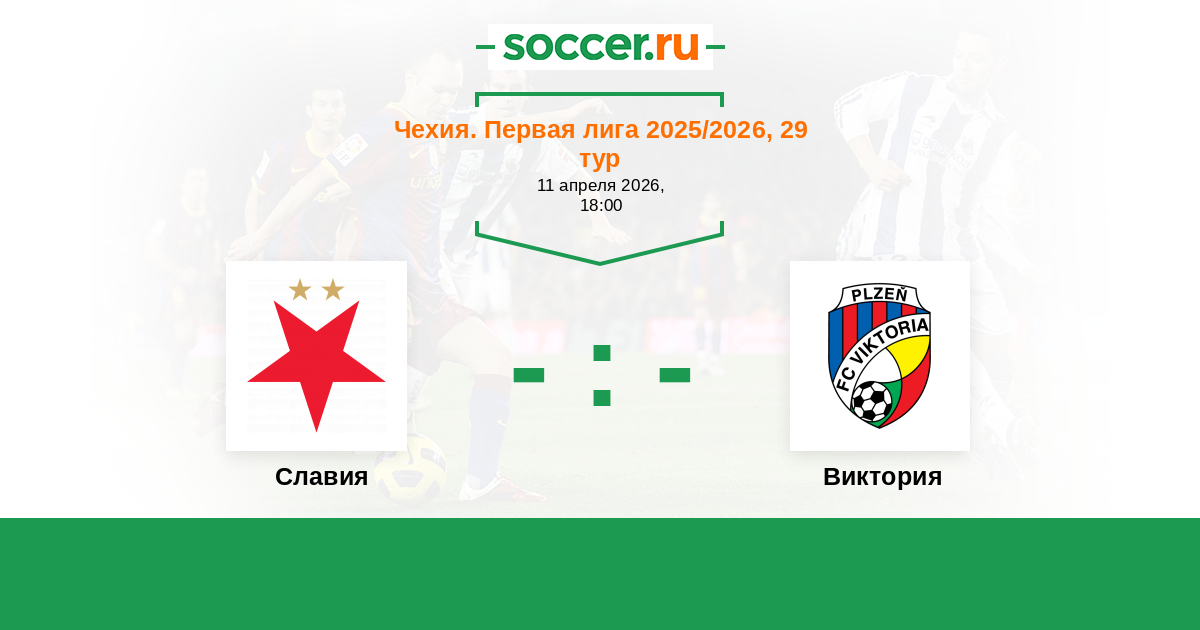 Чехия. Первая Лига 21.09.2024 Славия Логотип футбольный клуб Славия (Прага) 3:0 Логотип футбольный клуб Виктория (Пльзень) Виктория