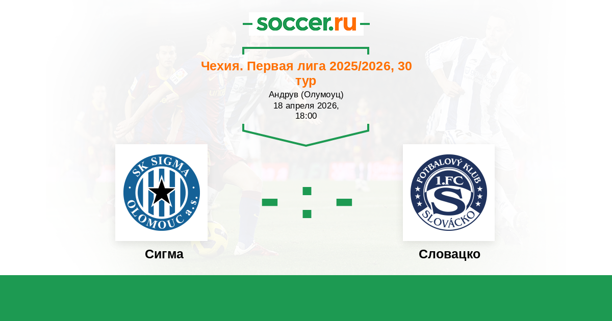 Чехия. Первая Лига 26.04.2014 Словацко Логотип футбольный клуб Словацко (Угерске-Градиште) 3:1 Логотип футбольный клуб Сигма (Оломоуц) Сигма