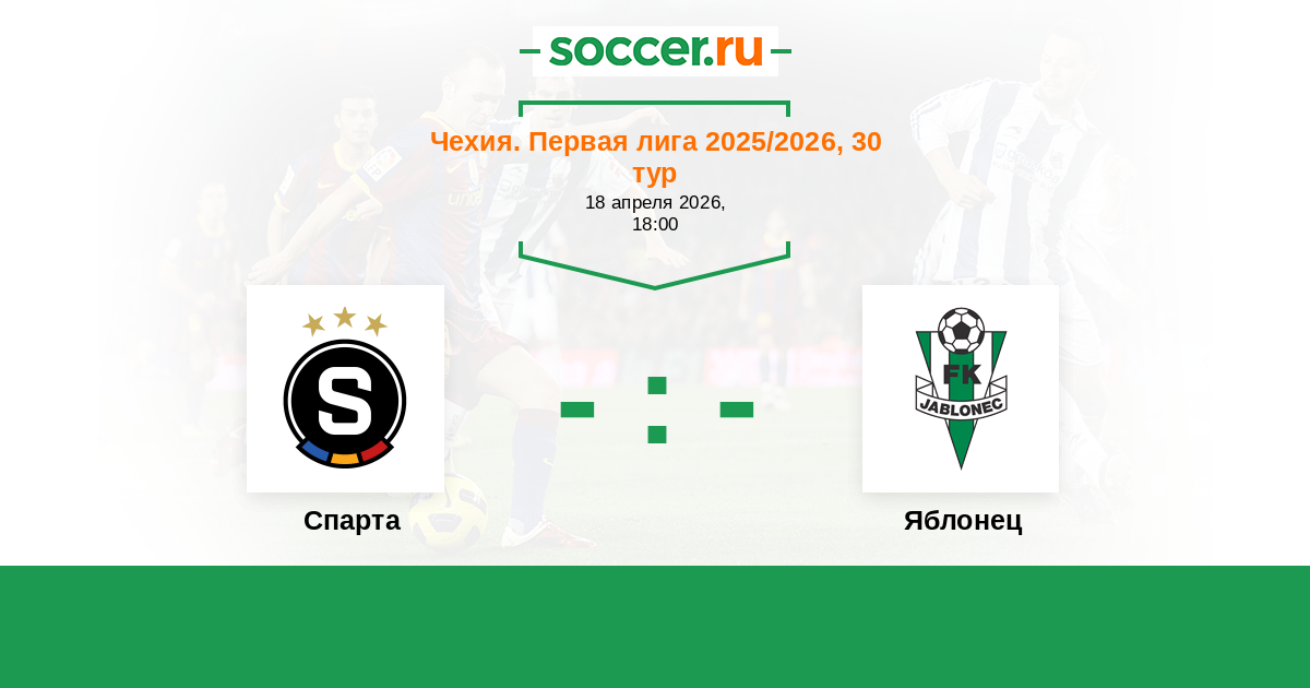 Чехия. Первая Лига 20.04.2018 Спарта Логотип футбольный клуб Спарта (Прага) 2:0 Логотип футбольный клуб Яблонец (Яблонец-над-Нисоу) Яблонец
