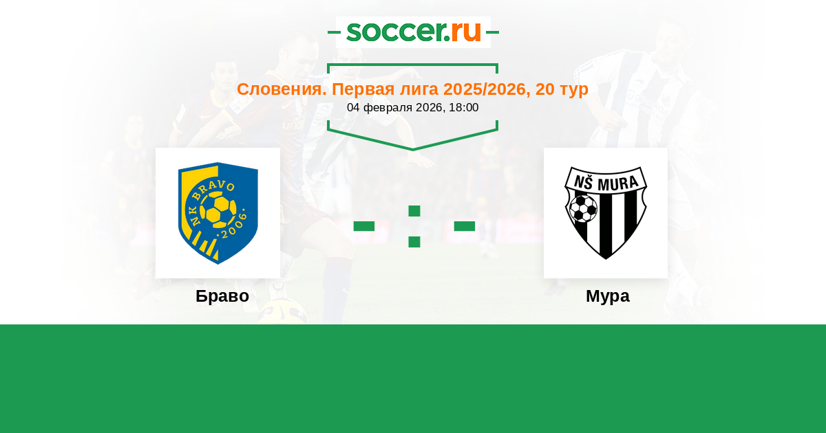 Словения. Первая Лига 25.02.2023 Браво Логотип футбольный клуб Браво (Любляна) 0:0 Логотип футбольный клуб Мура (Мурска Собота) Мура