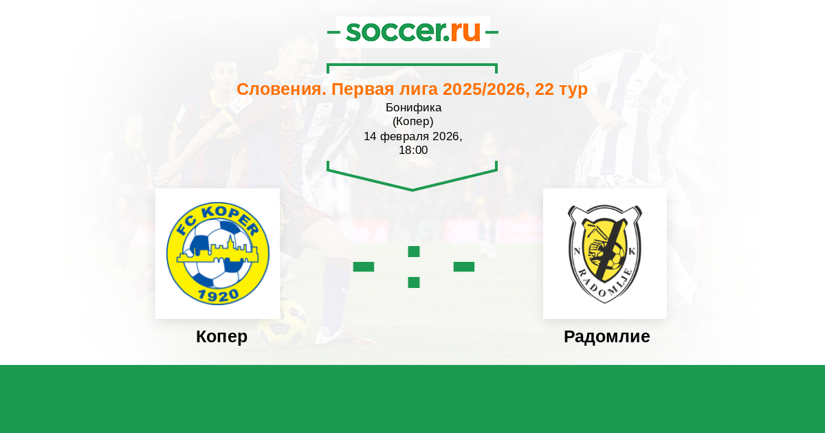 Словения. Первая Лига 21.02.2023 Копер Логотип футбольный клуб Копер 1:2 Логотип футбольный клуб Радомлие Радомлие