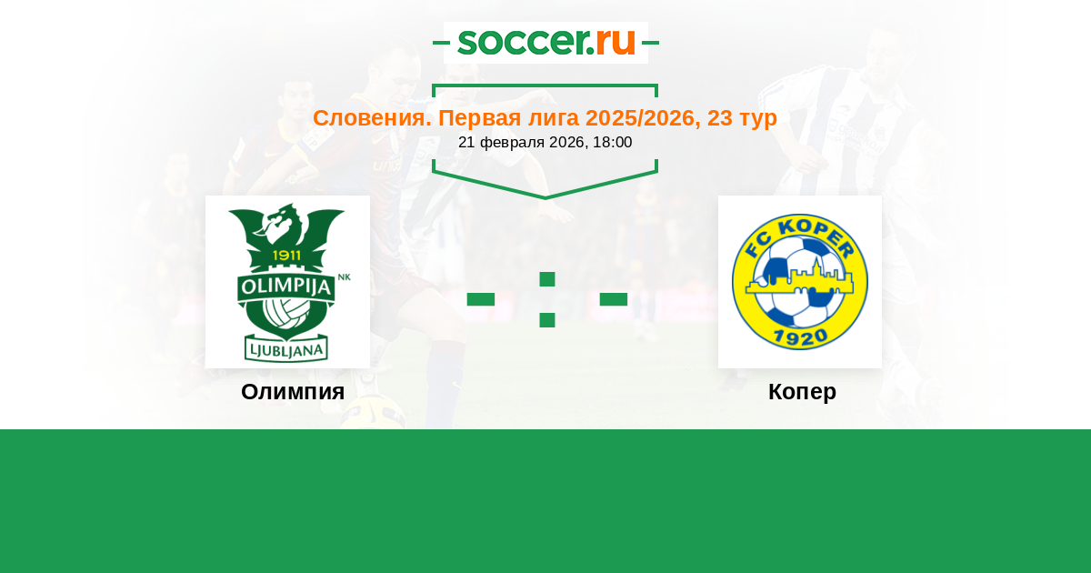 Словения. Первая Лига 30.03.2024 Олимпия Логотип футбольный клуб Олимпия (Любляна) 3:2 Логотип футбольный клуб Копер Копер