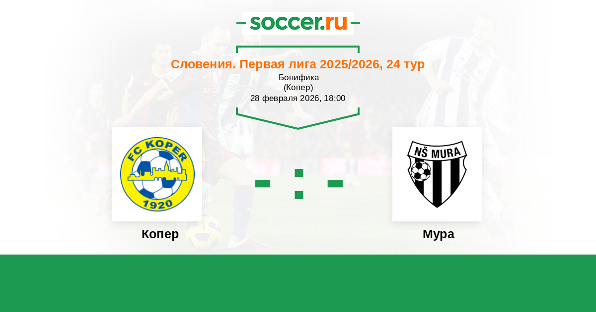 Словения. Первая Лига 23.03.2024 Копер Логотип футбольный клуб Копер 2:1 Логотип футбольный клуб Мура (Мурска Собота) Мура