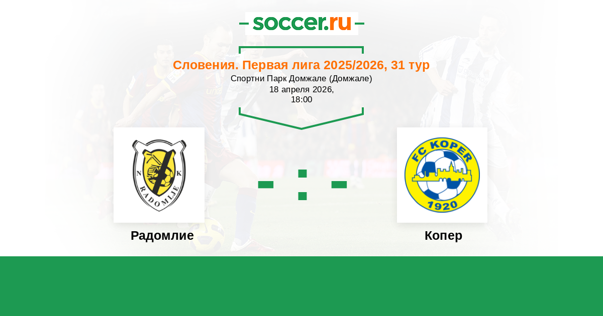 Словения. Первая Лига 29.09.2024 Копер Логотип футбольный клуб Копер 1:0 Логотип футбольный клуб Радомлие Радомлие