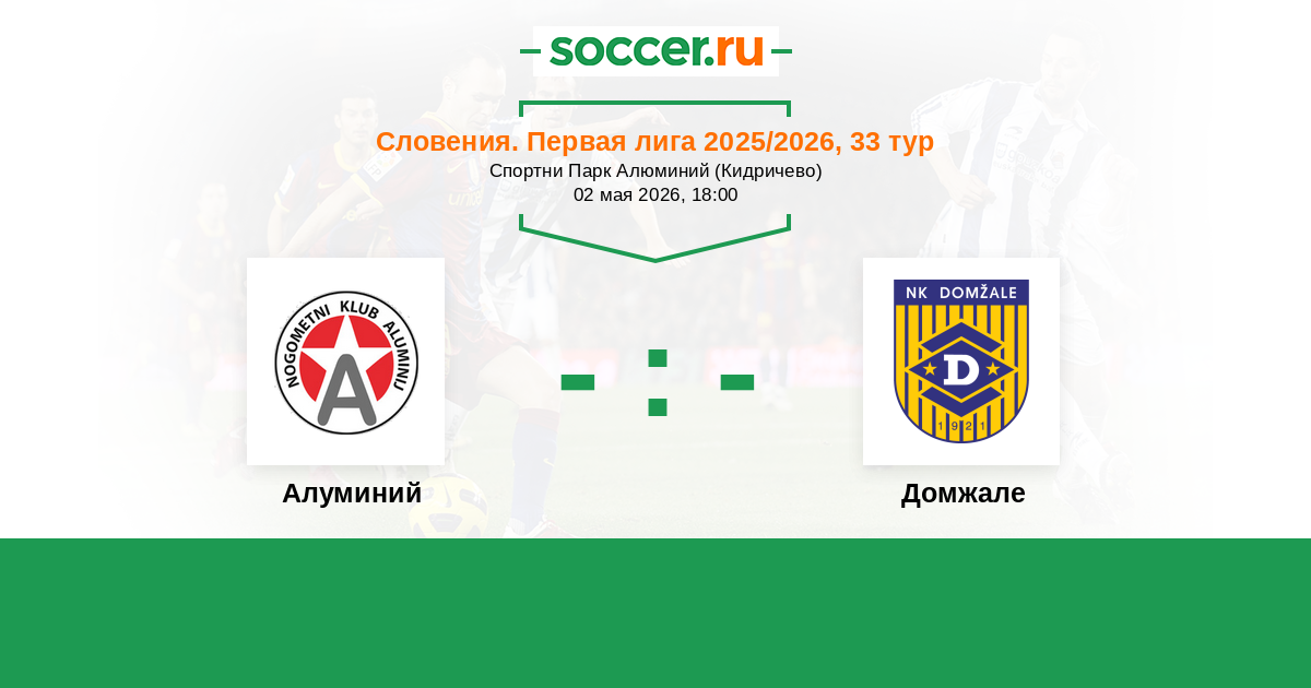Словения. Первая Лига 03.11.2019 Алуминий Логотип футбольный клуб Алуминий (Кидричево) 4:2 Логотип футбольный клуб Домжале Домжале