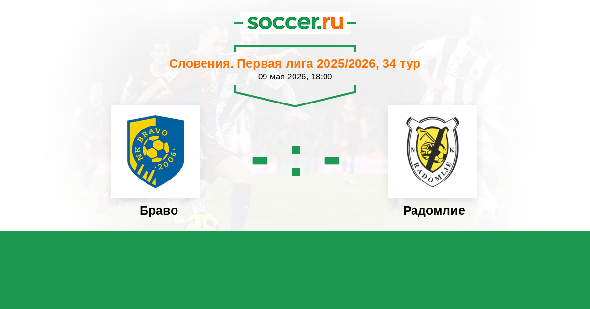 Словения. Первая Лига 30.08.2025 Радомлие Логотип футбольный клуб Радомлие 0:6 Логотип футбольный клуб Браво (Любляна) Браво