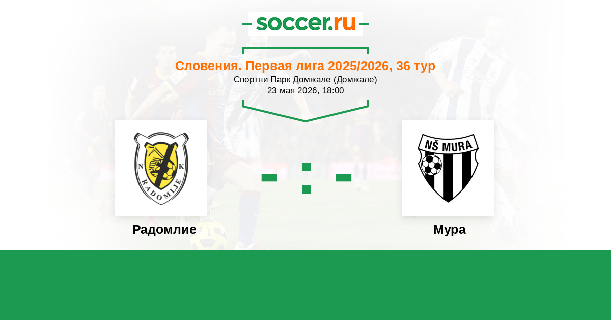 Словения. Первая Лига 25.02.2024 Мура Логотип футбольный клуб Мура (Мурска Собота) 0:0 Логотип футбольный клуб Радомлие Радомлие