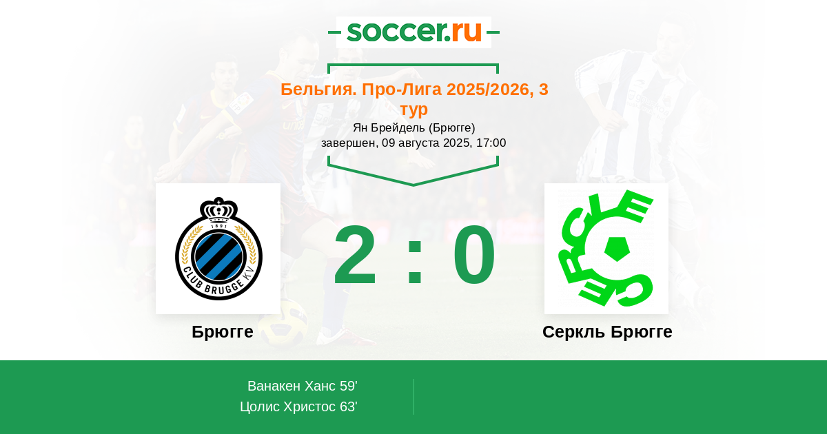 Протокол матча Брюгге против Серкль Брюгге