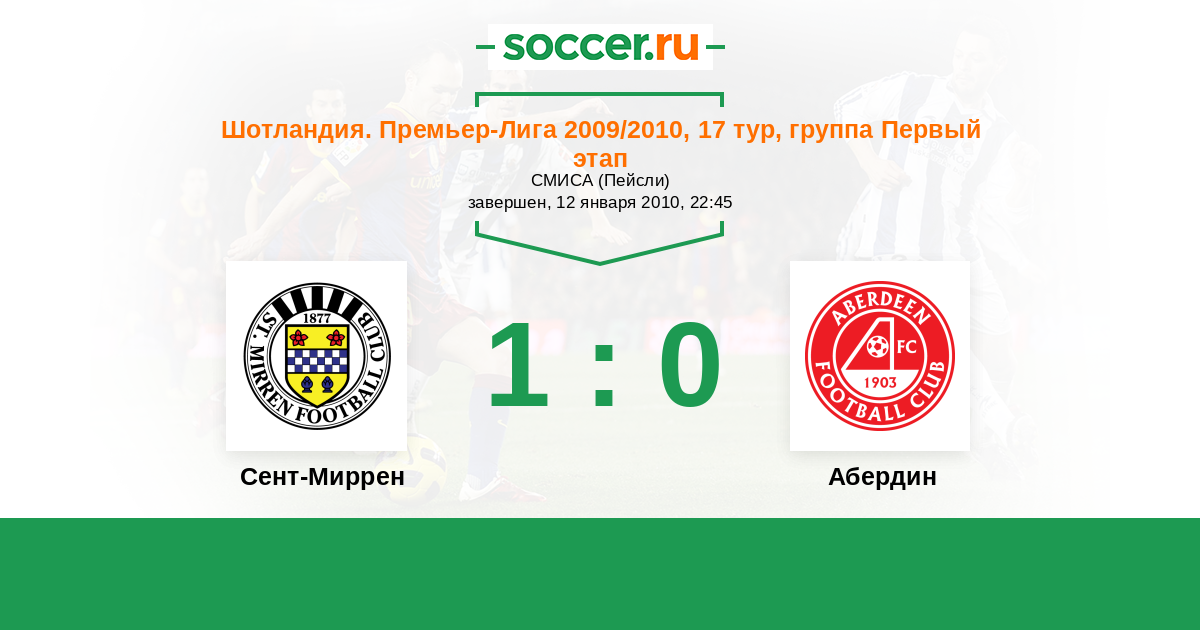 Шотландия. Премьер-Лига 08.05.2010 Сент-Миррен Логотип футбольный клуб Сент-Миррен (Пейсли) 0:1 Логотип футбольный клуб Абердин Абердин