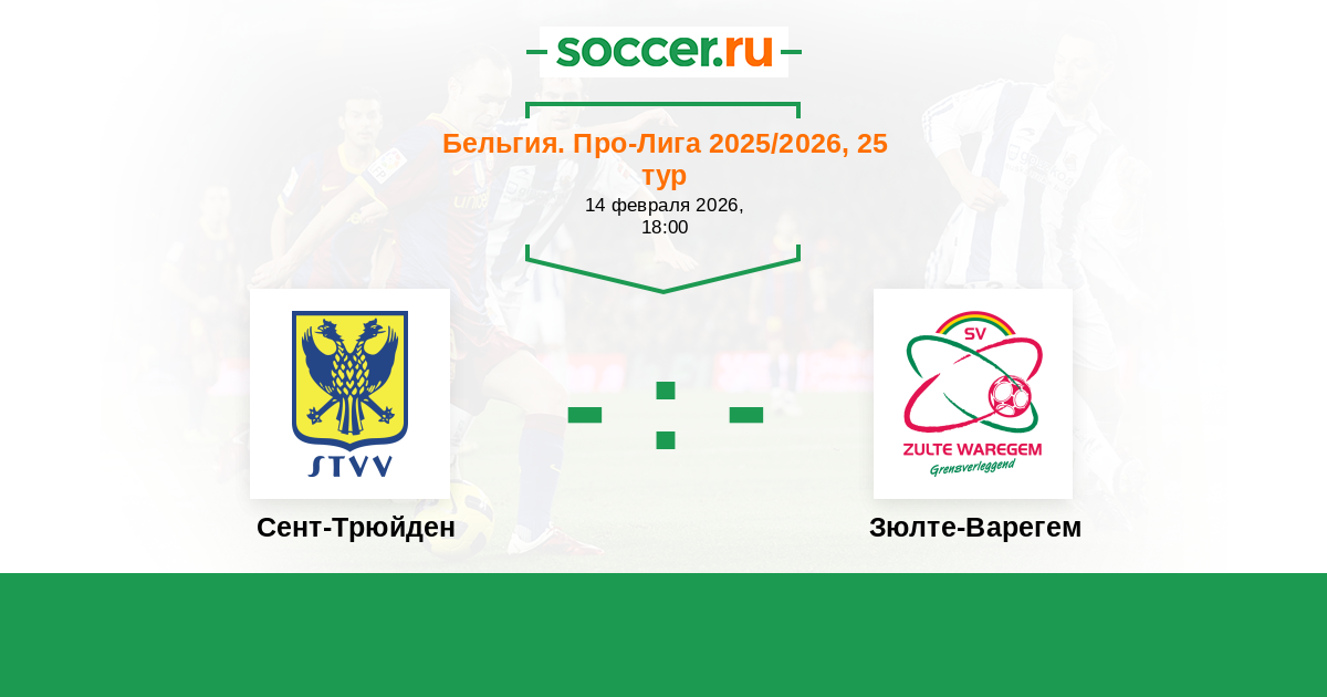 Бельгия. Про-Лига 16.02.2019 Зюлте-Варегем Логотип футбольный клуб Зюлте-Варегем 1:1 Логотип футбольный клуб Сент-Трюйден (Синт-Трёйден) Сент-Трюйден